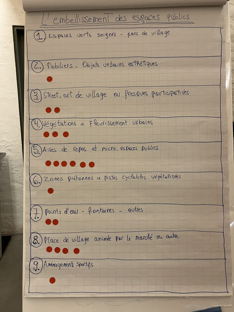Participants used visual and interactive tools to reflect on public space needs, cultural life, intergenerational connections, and ways to enhance built heritage while supporting the local economy. The exercises encouraged everyone to contribute directly to the planning and co-construction of their community’s future.