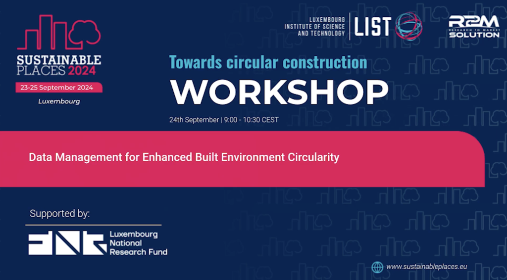 This workshop aimed to discuss best practices in digital solutions for circularity in the construction sector. It analyzed barriers and state-of-the-art digital tools and discussed roadmaps for sustainable building solutions. The workshop also examined the feasibility of reusing construction components and the need for top-level whole life-cycle performance and digital traceability. The workshop also discussed new digital tools under development for sustainability assessment and decision-making.