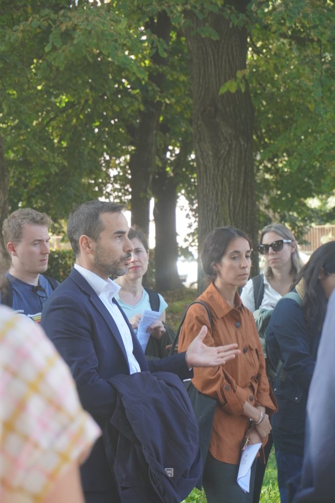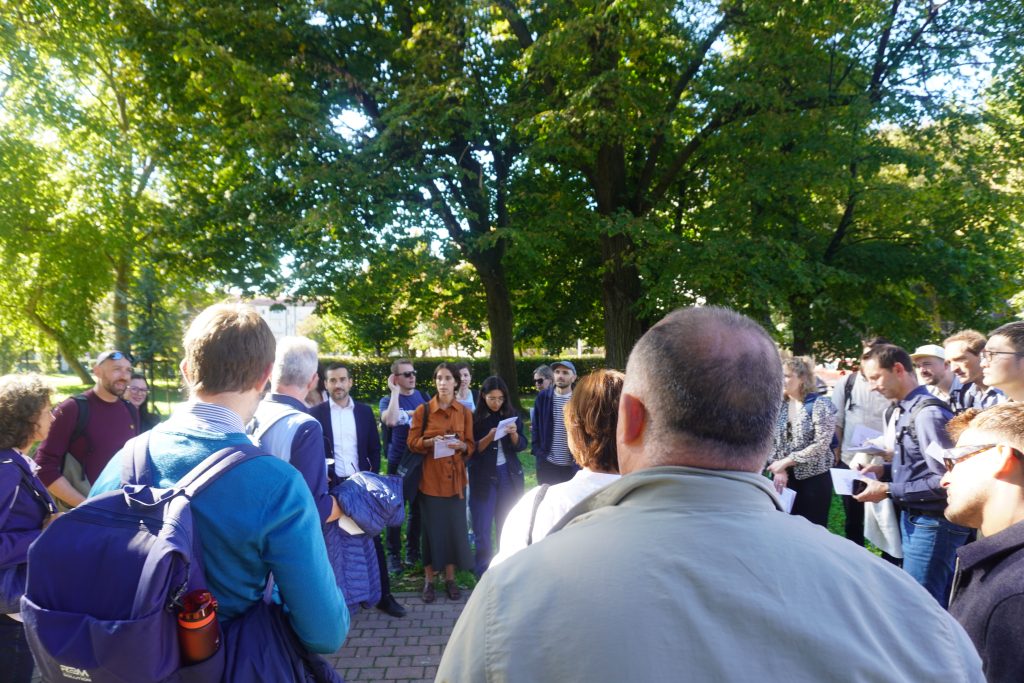 Next, we crossed Giambellino Park and paused at the entrance where the Clever Project team illustrated how Nature-Based Solutions (NBS) are concretely integrated into the regeneration plan, demonstrating their essential role in improving the urban environment. The new park, on land that had been abandoned for decades and was recently remediated, was redeveloped through a co-design process involving local residents and associations. This led to the co-creation and shared management of the spaces and green areas, following the principles of community gardens.