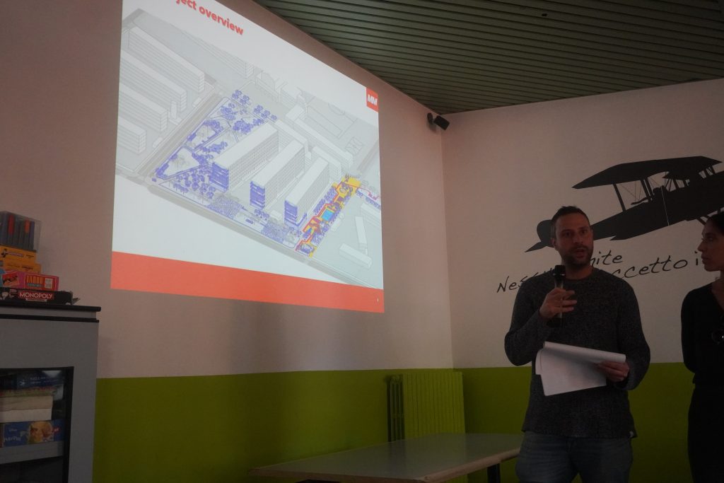 The consortium launched the tour at Metro Gelsomini, where City of Milan representatives provided an initial overview of the Giambellino-Lorenteggio district, addressing its history, complex social context, and unique regeneration challenges.