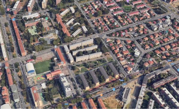 On Via Segneri, partners observed the striking contrast between historic social housing and new, modern developments, illustrating the ongoing urban renewal strategy.