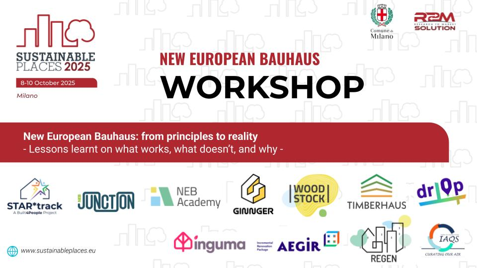 - Description: This session will explore how R&D projects are putting New European Bauhaus (NEB) values into practice. Participants will exchange experiences on tools and approaches, covering topics such as urban planning, energy communities, material reuse, and indoor air quality monitoring.