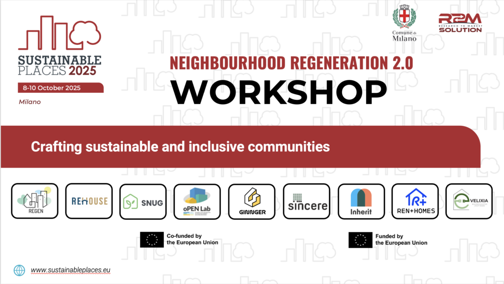 - Purpose: The workshop will focus on the urgent need for neighbourhood regeneration aligned with sustainability, inclusivity, and low-carbon goals. It aims to foster collaboration between projects and stakeholders to co-design solutions that can be scaled up from individual buildings to entire neighbourhoods.