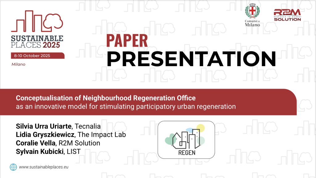- Neighbourhood Regeneration Offices (NROs): physical spaces combining technical support and community engagement in four demo sites across Luxembourg, Ireland, Italy, and Spain